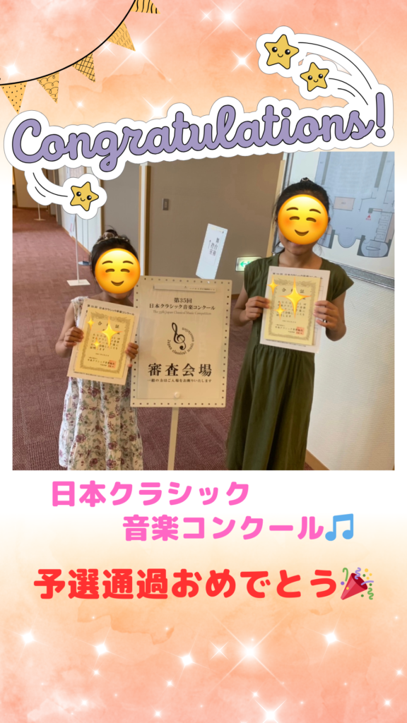 先週、小学校3年生のAちゃんと5年生のNちゃんが神戸市産業振興センター ハーバーホールにて行われた【第35回日本クラシック音楽コンクール】に参加し、見事に予選通過しました😆🙌