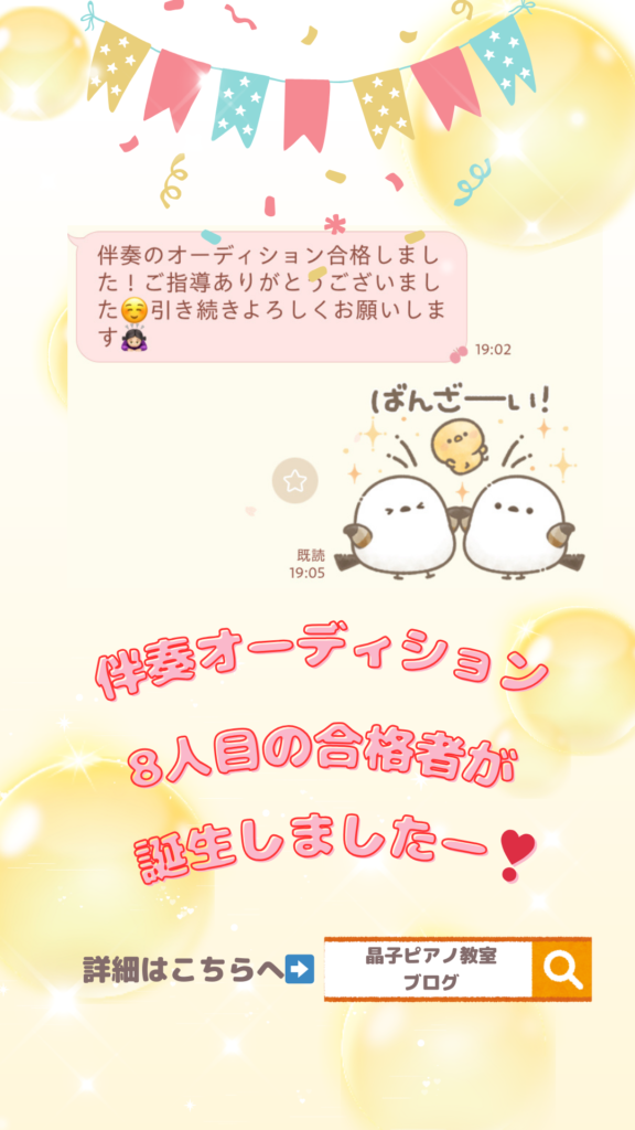 先日、K中学校のKちゃんから「合唱コンクールの伴奏オーディション合格しました!」とメッセージをいただきました🙌