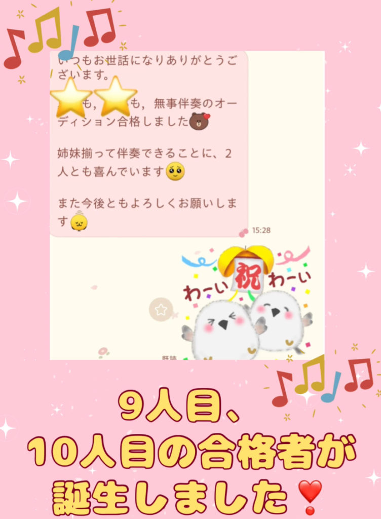 先月、日本クラシック音楽コンクールにおいて予選通過したAちゃんとNちゃんが、小学校の音楽会・合唱伴奏オーディションにも見事合格しましたー🎉\(^o^)/おめでとー❣️