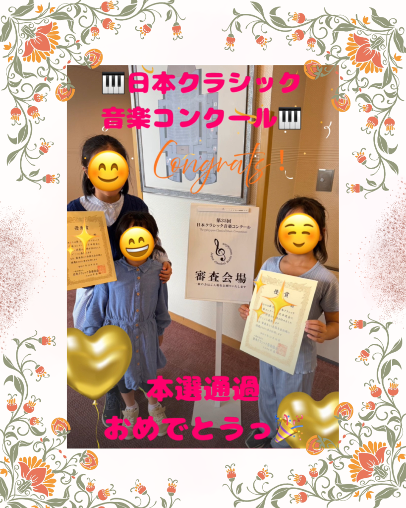 昨日、神戸市産業振興センター ハーバーホールにて【第35回日本クラシック音楽コンクール】が行われ、Aちゃん(小3)とNちゃん(小5)が見事に本選を通過しました👏🙌