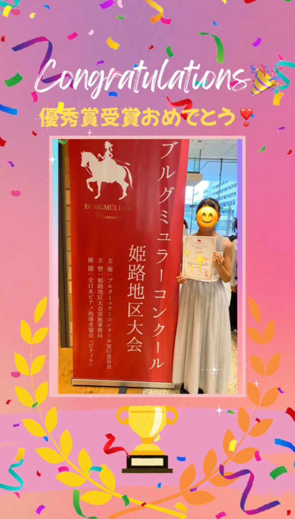 先週、10月26日(日)にアクリエひめじにてブルクミュラーコンクール【姫路地区大会】が開催され、中学1年生のHちゃんが見事に優秀賞受賞しました👏✨