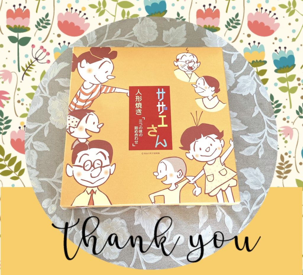 お土産いただきました💖 2022年11月3日 412PV 日々のこと Mちゃんに「サザエさん人形焼き」をいただきました❣️家族皆で、「サザエさんGet!」「ワカメちゃん、いただきまーす!」と、盛り上がりながら美味しくいただいております✨ Mちゃん、お土産有り難うねっ🥰 「嬉しいご報告をありがとう✨」 「たくさんいただきました🥰」
