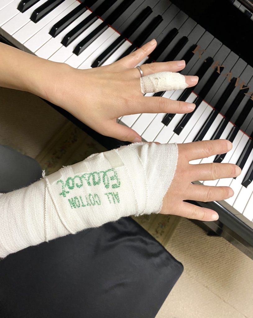 レッスン生の皆様、ごめんなさい🙇♀️しばらくピアノが弾けません💦何かとご不便をお掛けしますが、どうぞよろしくお願いいたします。