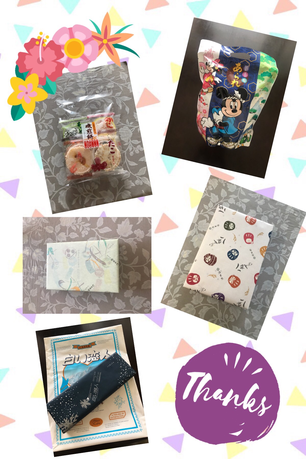 Mちゃん&Kちゃんに、淡路島のお土産、K君&Y君にディズニーランドのお土産、Yちゃんに広島のお土産、Mちゃん&Mちゃんに東京のお土産、最後にAちゃんに北海道のお土産をいただきました♡